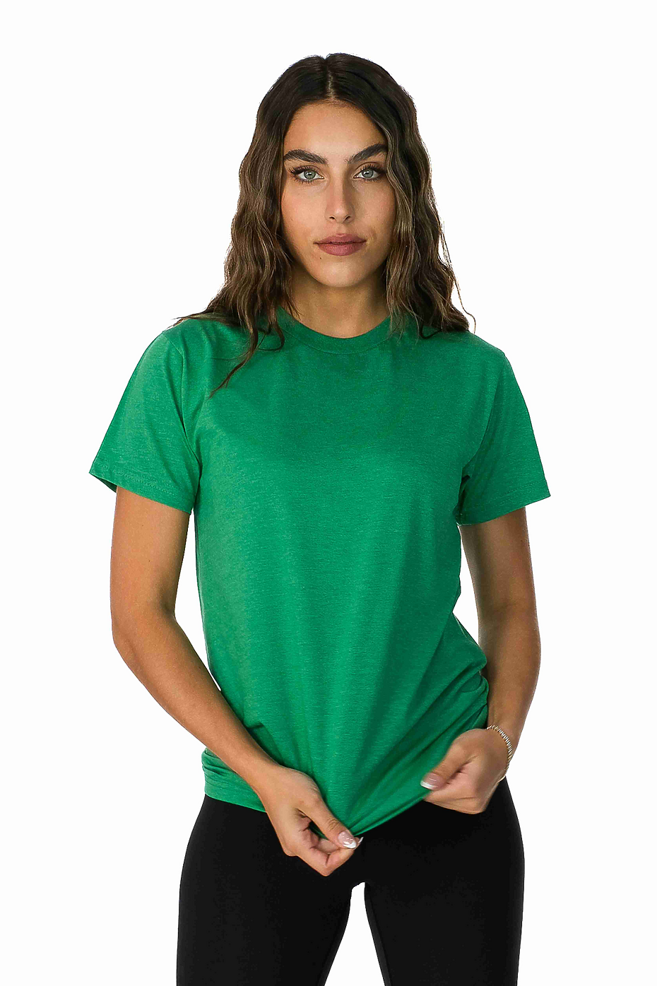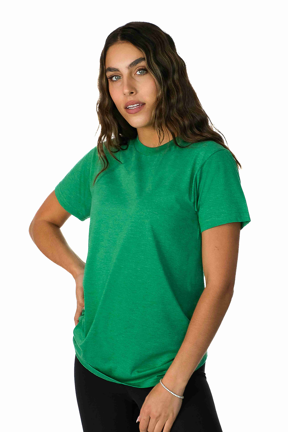 Our Premium Heather Short Sleeve Crew Neck Tee is super comfortable and made of a 145 GSM / 4.3 OZ premium blend of 60% cotton and 40% polyester. It features a ribbed neckband and double-needle stitching at the hem and sleeves, ensuring durability and a polished look. The shoulder taping and tubular construction add to its structural integrity, making it best for casual vibes and everyday comfort.
