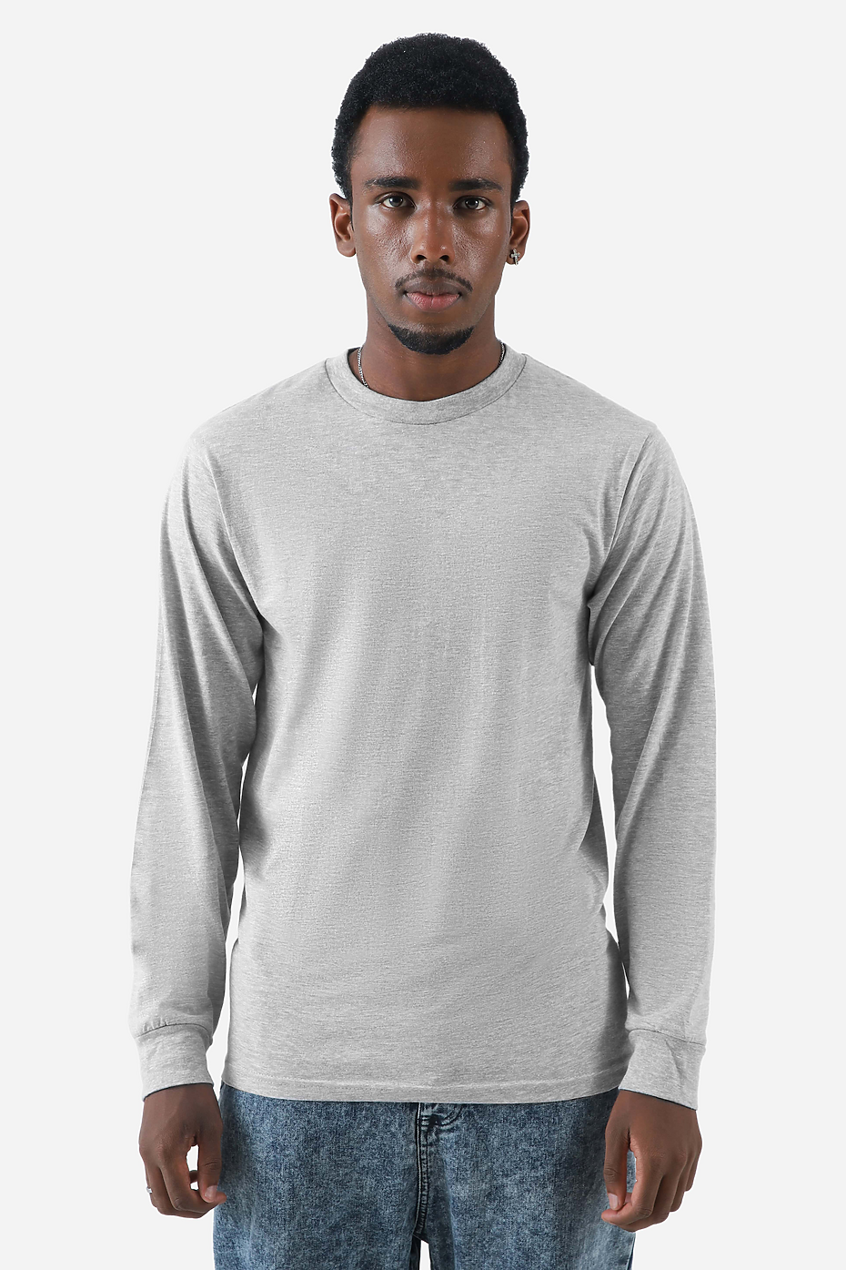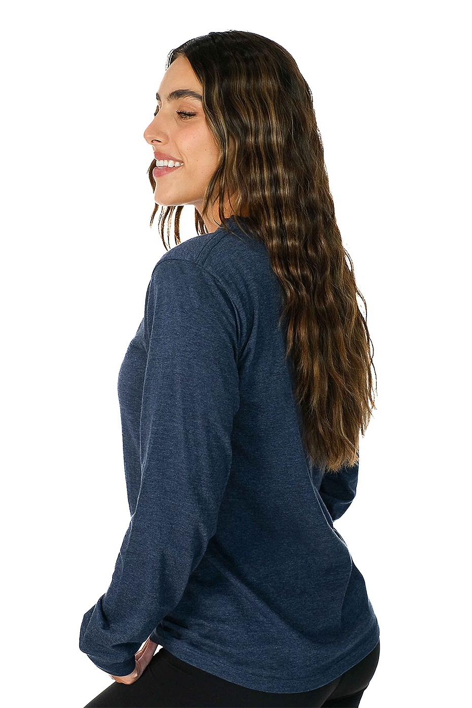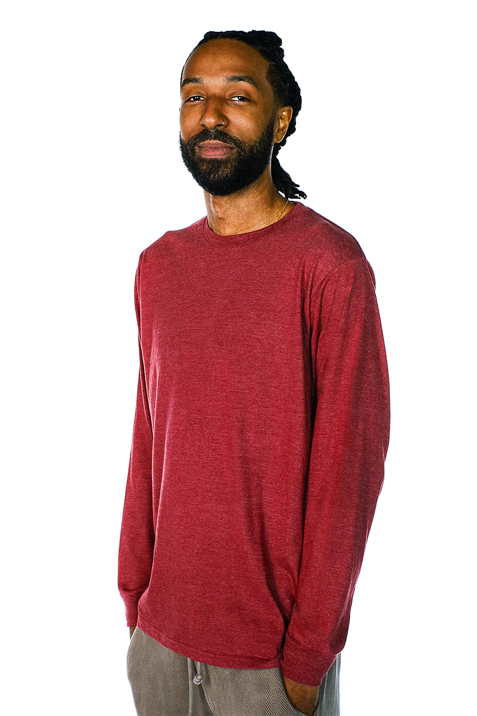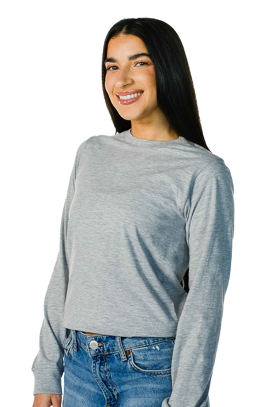 The Premium Heather Long Sleeve Crew Neck Tee is made with 145 GSM / 4.3 OZ premium CVC materials (60% cotton and 40% polyester) for a classy look and soft feel, making it perfect for everyday wear. Features like the ribbed neck and cuff band and double-needle stitching at the hem ensure durability and style. This tee acts as a blank canvas for painting. Available in bulk.