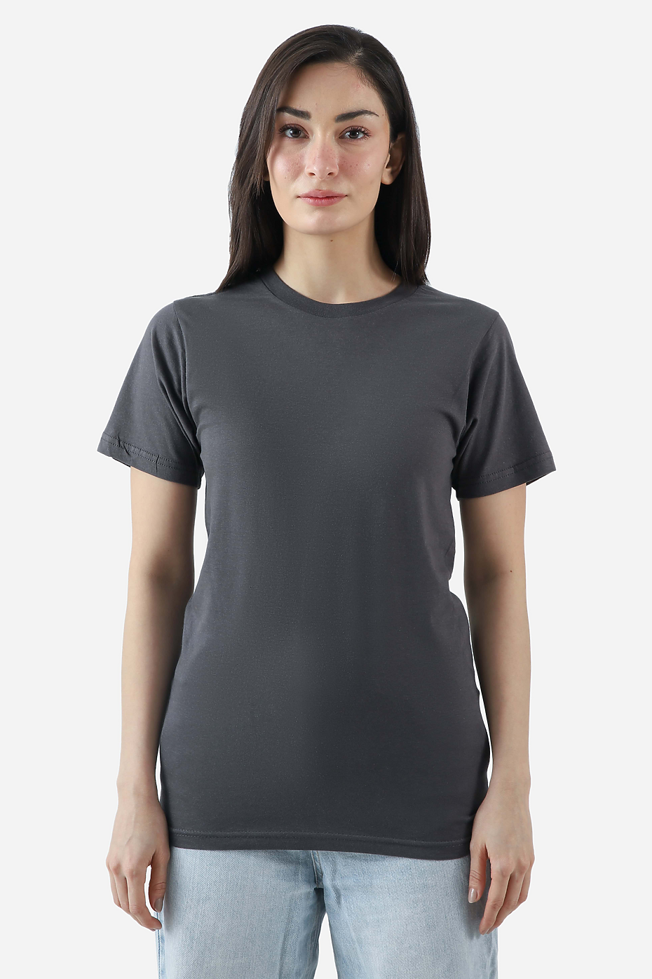 Our Classic Short Sleeve Crew Neck Tee features a crew neck, ribbed neckband, and tailored fit. Crafted from 145 GSM / 4.3 OZ ring-spun carded cotton, this tee is a daily-wear essential made for comfort. The smooth cotton surface acts as an excellent canvas for DTG printing. Features like shoulder taping and double-needle stitching at the hem and sleeves ensure durability and style. Available in bulk.