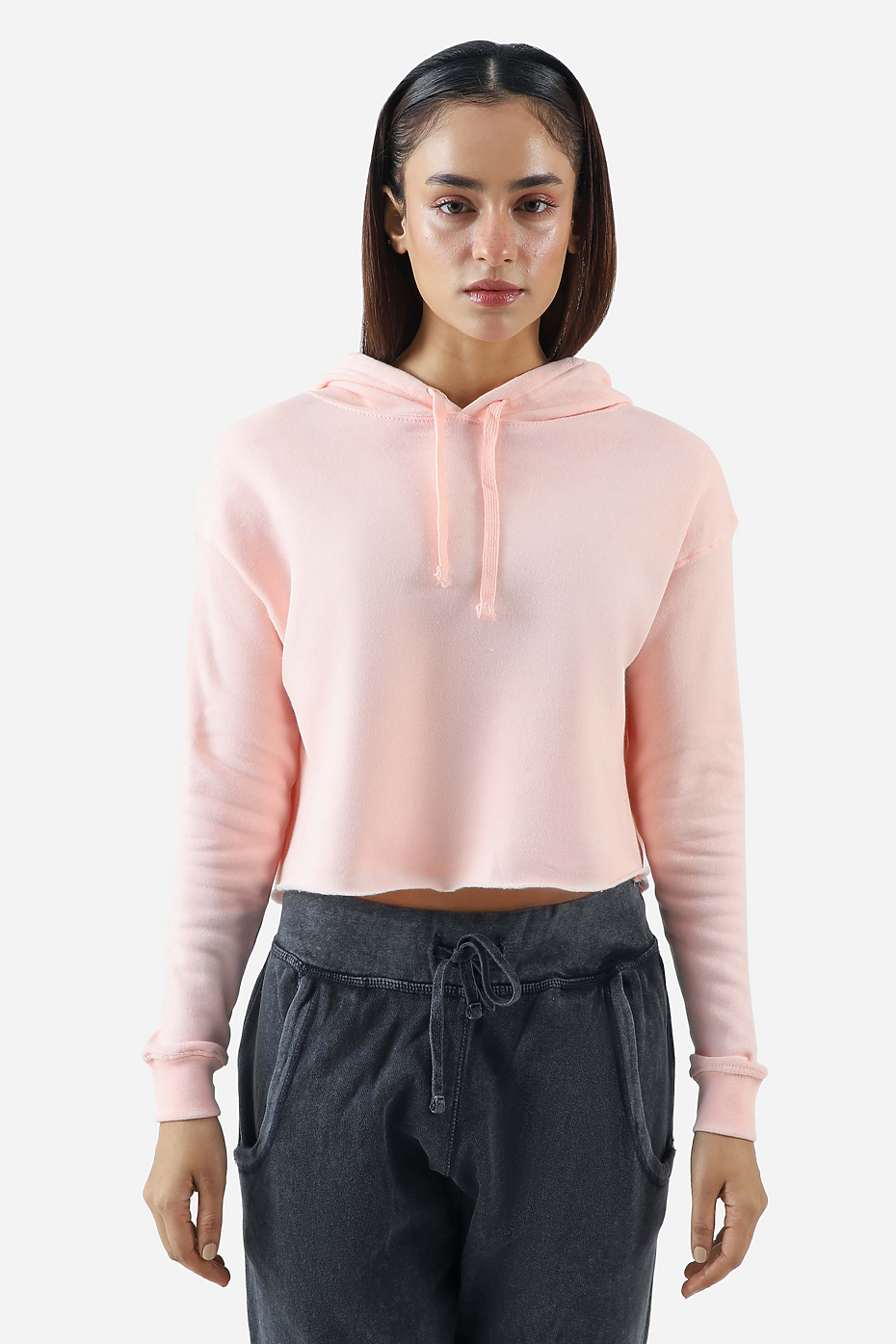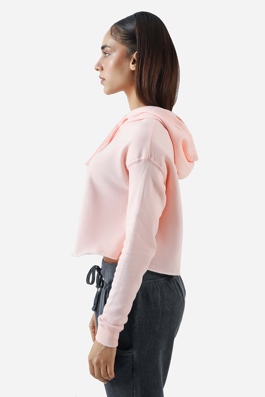 Channel your athletic and modern side with the slip-on style women’s crop hoodie to cater to all your cozy, cold weather needs. This crop hoodie is made with 60% cotton and 40% polyester blend, prepared from sponge terry fleece to make it ultra-soft, this hoodie has everything; a cropped waist for a sporty edge, straddle armhole, and cuff with raw edge bottom for added softness.