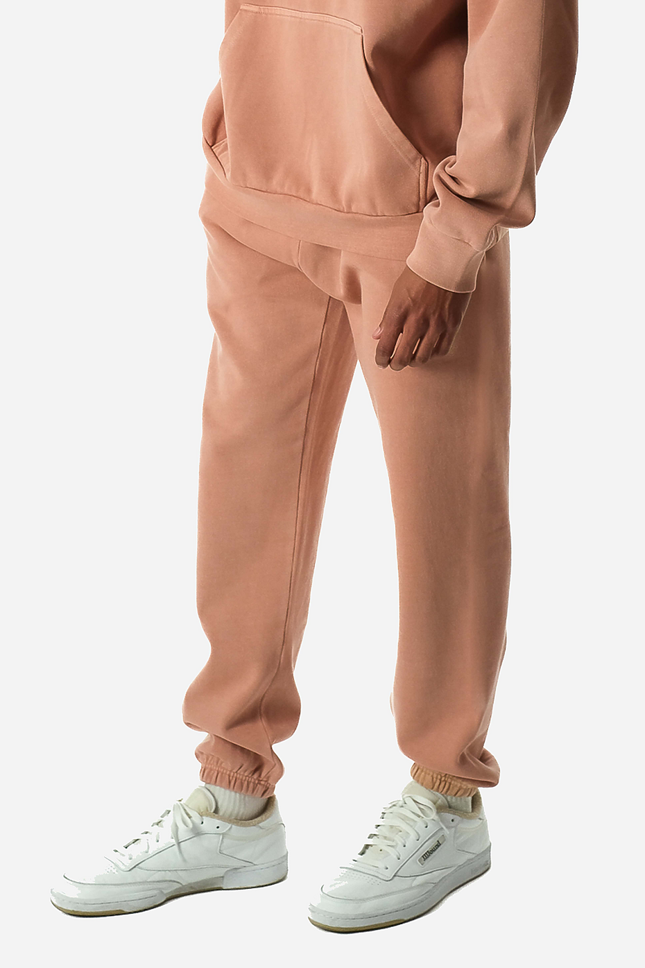 Introducing the Heavy Weight Jogger Pants, our elevated take on a Streetwear classic. Designed in the heart of Los Angeles and weighing in at 12 OZ / 400 GSM, the Heavy Weight Jogger Pants feature a custom milled 3-end 80% Cotton/ 20% Polyester fleece with a 100% combed cotton facing, ensuring a soft and cozy feel. Designed with a relaxed fit for maximum comfort and style. Equipped with metal tipped drawcord on interior of elastic waistband. Available in a variety of beautiful Pigment Dyed colors as well as your classic Black and White Reactive dyed.
